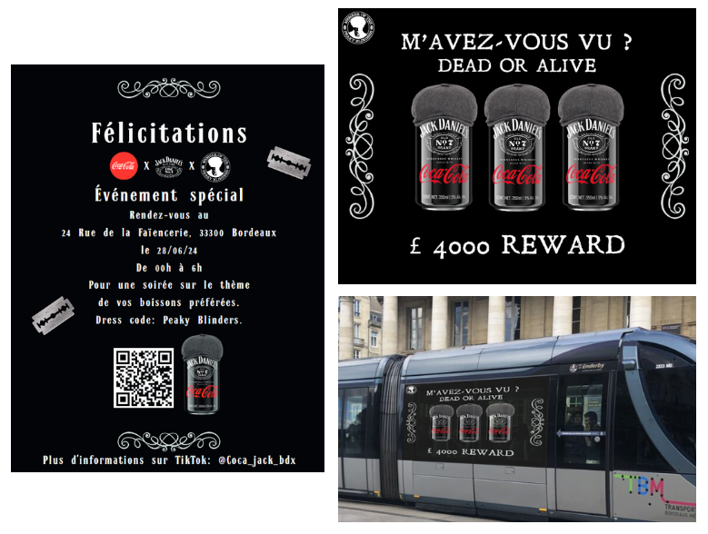 Utilisation de publicité sur le tramway + affiches dans toute la ville.