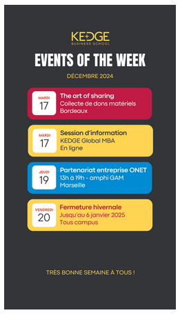 Réaliser l’agenda hebdomadaire disponible en story instagram pour KEDGE BS.